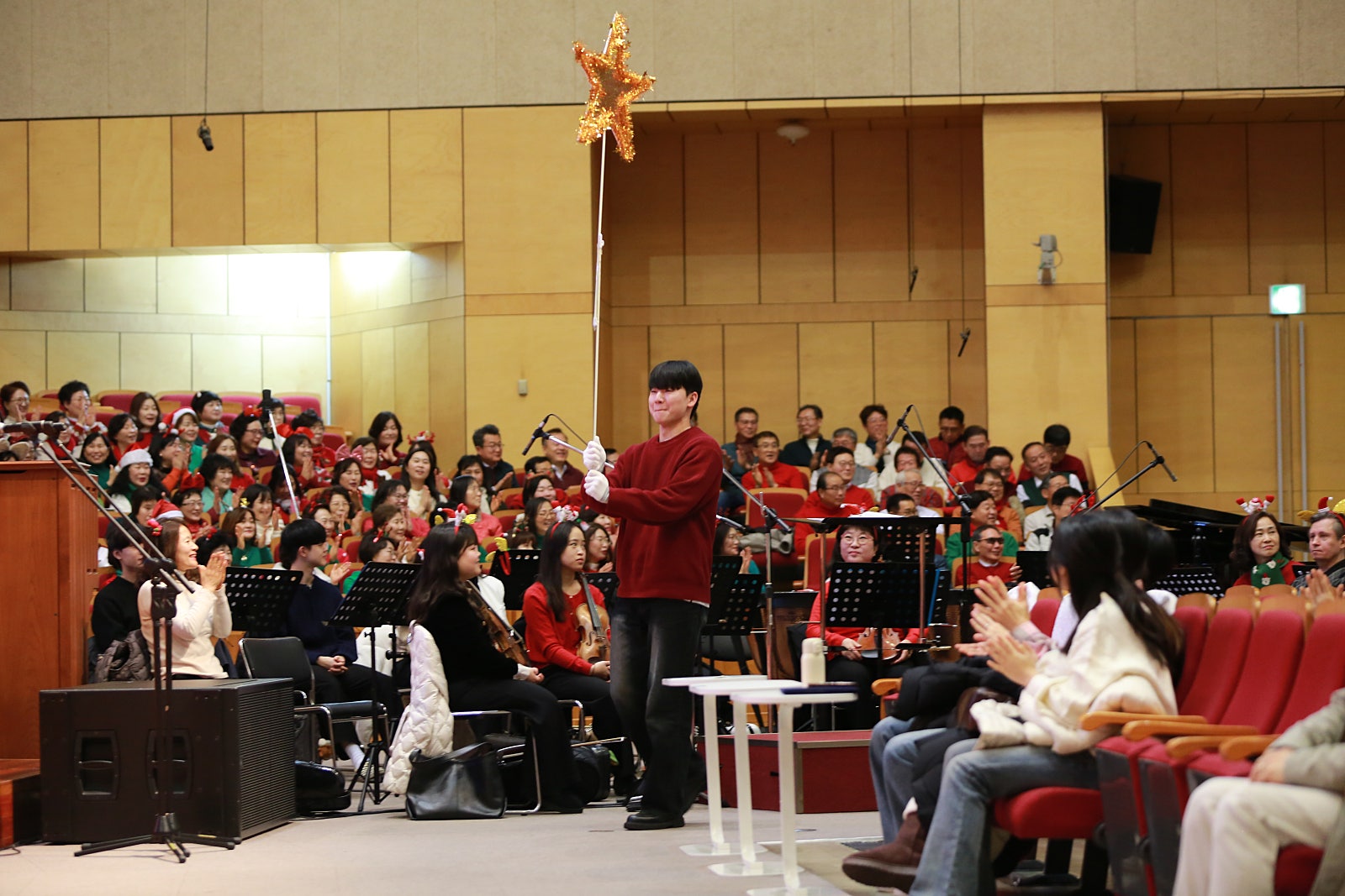 아기 예수님의 탄생을 기뻐하며, 사랑부 지체들의 정성 어린 연극과 말씀이 어우러졌던 은혜로운 크리스마스 예배 현장입니다.